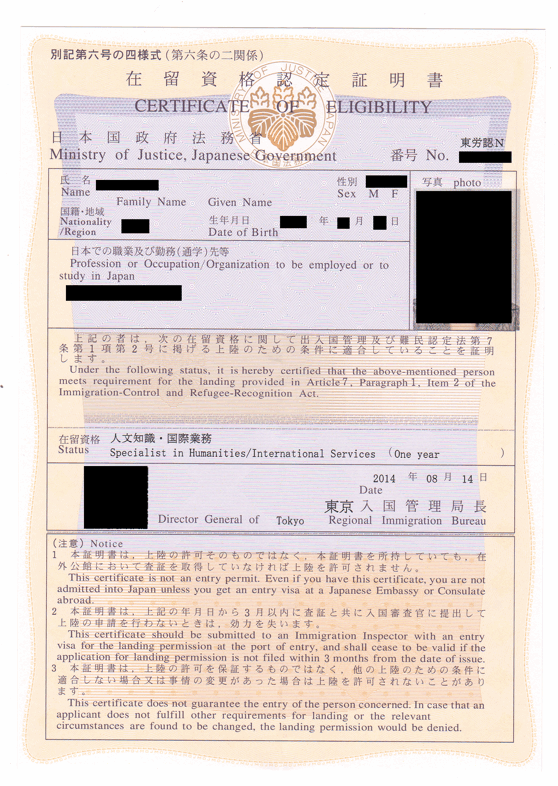 先月行った在留資格認定証明書交付申請「人文知識・国際業務」の結果が